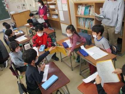 2年3組でSTEAM教育についての研究授業が行われました。「えがおのひみつたんけんたい」として、松原のまちのいろいろなところに出向き、インタビューをしてきた内容を基に、一番伝えたいことは何かを同じ場所を調べた友達でのグループで話し合いました。発表したい内容をグループでどのようにまとめるかを考える時、なぜその内容を伝えたいのかを深く考えることが大切です。内容が決まった後は、適切な発表方法を考えました。話し合いは次の時間にも続いていきます。
