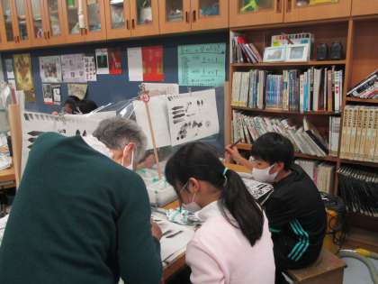 11/27 6年生の水墨画の学習 その3