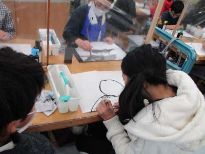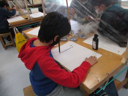 11/30 6年生の水墨画の学習 その2