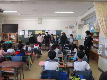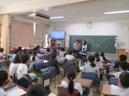 総合的な学習の時間の単元「未来を考える」の学習で、松原小の食品ロスを減らすためには、どうすればよいかを、給食の残菜量を手掛かりにしながら考えてきました。今日は担当するクラスの子どもたちにも食品ロスをなくそうという意識を高め、行動に移してもらうために準備してきたことを発表する日です。朝のモジュールの時間を使って、各班工夫して自分たちの考えを伝えています。
