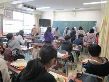 昨日から始まった3学期の給食。6年生の配膳の様子です。小学校の給食を食べられる日も残りわずかになってきました。