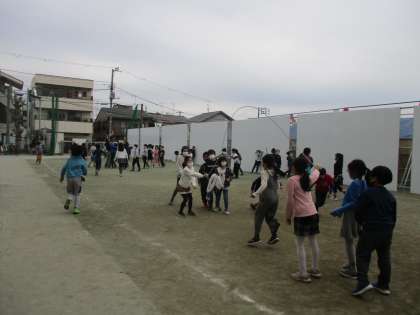 今日はどんよりと曇って、気温も低いです。長縄で友達が跳べるように、跳ぶタイミングを「はい」「はい」と声を掛けて教えている子がいます。