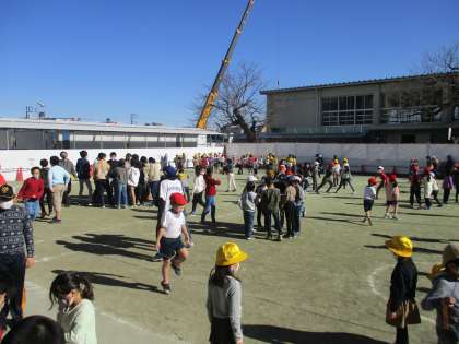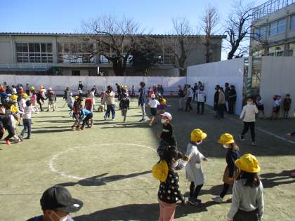 青く澄み渡る空の下、大寒が明日に迫りとても気温は低いですが、おにごっこをして遊んでいます。