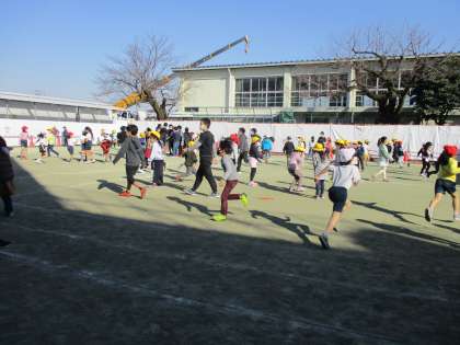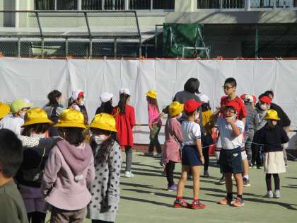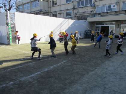 長縄を一斉に跳ぼうと1年生が頑張っていました。何度か挑戦しましたが、もう少し時間がかかりそうです。