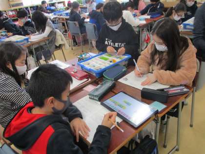 社会科で自動車の学習をしたことを振り返りながら、「エンジニアになり、これからの社会に求められる自動車」作りに取り組みました。どのようなニーズがあるか、いろいろな立場の人はそれぞれどんな思いをもっているかなどから考えを進めていきました。