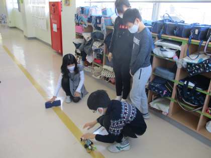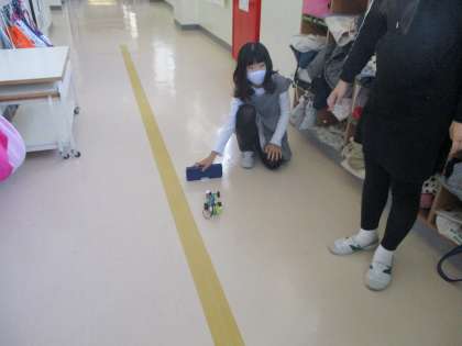 実際に創り上げた自動車を動かして見せてくれました。「目の不自由な人でも運転できる自動車」がコンセプトなので、発車する時は発車メロディーが鳴り、障害物がある時は、その手前で「止まります」のアナウンスが入ります。創り上げた自動車は目の不自由な人だけでなく、運転の苦手な人にも役に立つのではと思いました。