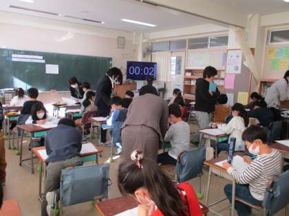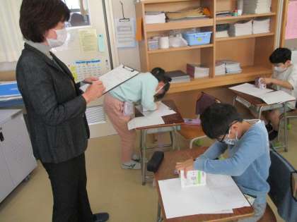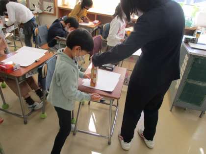箱の面を写し取る作業では、写し取った面が重ならないよう、不足がないよう番号を振りました。うまく鉛筆で線を引こうと立ち上がって作業をする子もいました。