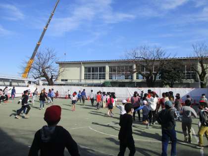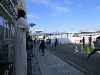 今日は少し寒さが和らぎましたが、じっとしているとやはり冬であることを感じます。今週は1年生は体育館、2・4・6年生が職員室側校庭、3年生が正門側校庭、5年生が屋上です。元気に走り回っている子が多くいます。1年生の電車ごっこも続いています。
