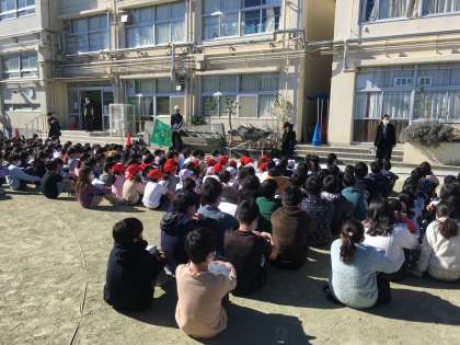 震度5以上の大地震を想定して、避難訓練を行いました。前回の避難訓練より静かに避難することができました。