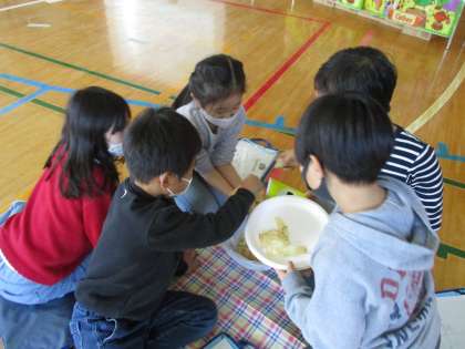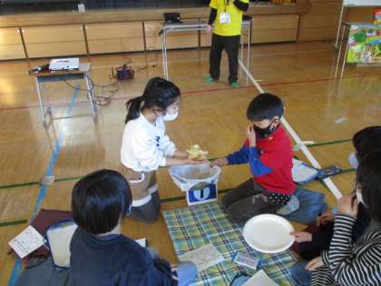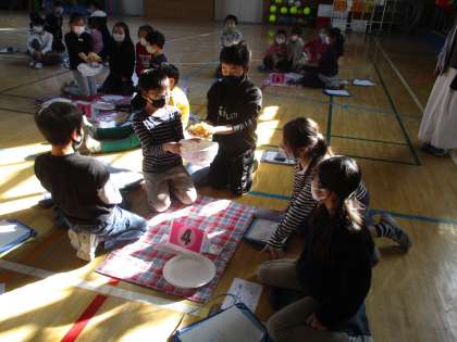 35グラムのポテトチップスを、班長の友達の手の上に載せてみると、ちょうど両手に載るくらいの量でした。