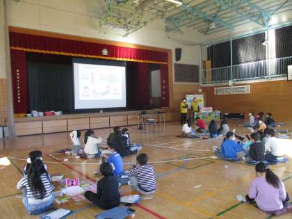 教えていただいたことをワークシートに次々書き込んでいます。200キロカロリーを消費するには、運動をどのくらいする必要があるか、自分のおやつはどのくらいのカロリーなのかを調べました。おやつは量と時間を守って、選ぶ時はパッケージを見て確認することが大切だと分かりました。