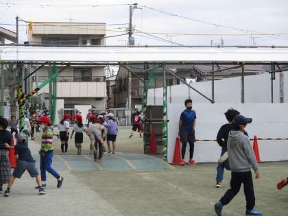 今週は正門側校庭が3年生、職員室側校庭が1,2,6年生、屋上が5年生、体育館が4年生の遊び場所です。