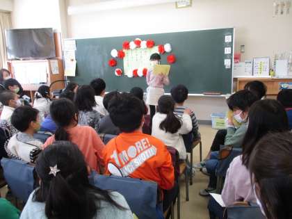 4年生がそれぞれのクラスで二分の一成人式をしました。昔の写真を持って来たり、家族の方にインタビューをしたりして、まとめたことを発表しました。最後にサプライズでお家の方からのお手紙を受け取りました。