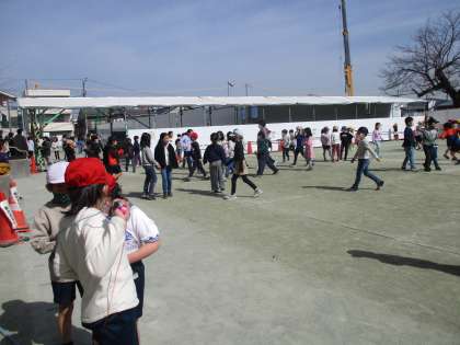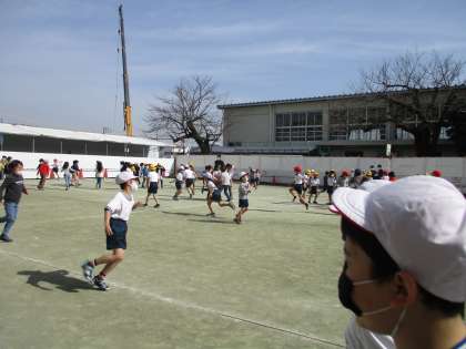 今週は正門側校庭が5年生、職員室側校庭が1,2,6年生、屋上が3年生、体育館が4年生の遊び場所です。
