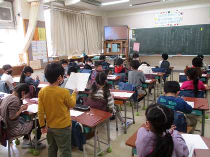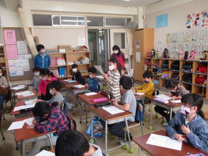 お互いにクイズを出題し終えた後は、学習の振り返りをしました。友達のよかったところを探して発表する子がたくさんいました。