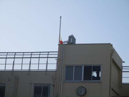 今日は東日本大震災から10年目に当たる日です。震災で犠牲になった大勢の方のご冥福をお祈りして、半旗を掲げ、午後2時46分に黙とうを行いました。