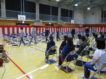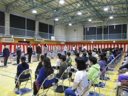 6年生は卒業式さながらに、目線を高く保ち、しっかりとした足取りで自分の席に向かいました。迎える5年生の伸びた背筋に、引継ぎ式に臨む意気込みが感じられました。
