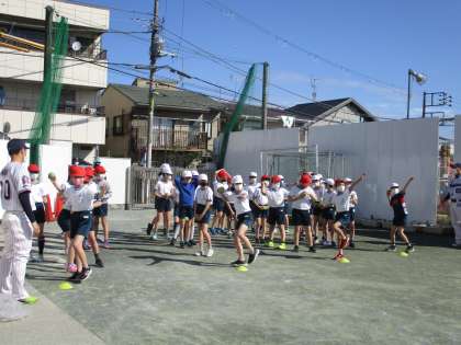 講師の先生の「そうそう。」「今のいいね。」などの声掛けをいただきながら、教わった投げ方で投げているうちに、今までよりも遠くにフライのボールを投げることができるようになった子が何人もいました。