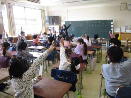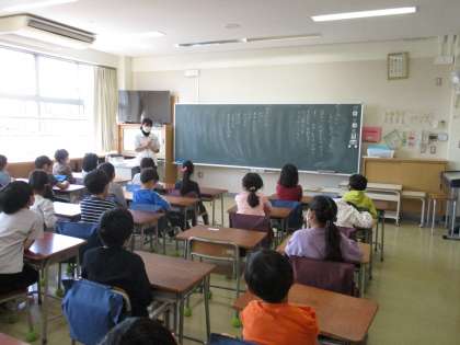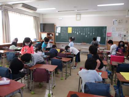 新しいクラスになって、どのような係活動や当番活動が必要かを話し合って考えています。自分の係が決まった後は、友達と協力しながらカードに名前や仕事の中身を書いていきます。