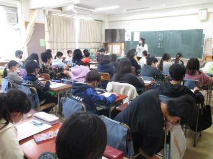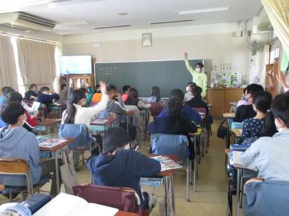 初めての家庭科では、新しい先生の自己紹介を聞いています。社会科では、日本国憲法にや政治の役割について学んでいます。