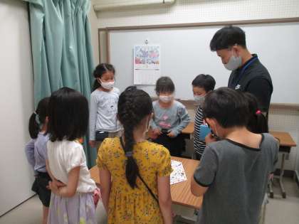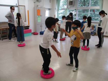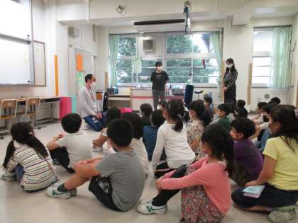 すまいるルームはどんな学習をするところか、担当の先生から2年生にお話をしていただきました。その後、実際の学習に使う用具を使って、すまいるルームでの学習を体験しました。楽しく取り組みながら、すまいるルームについて理解を深めていきました。