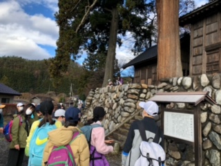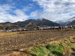 長い列を作りながら川場村の中を歩いていると、時々村の方にお会いするので、「おはようございます」とあいさつをしながら歩きました。愛宕山の麓までやってきました。