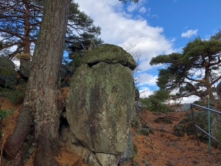 愛宕山の頂上は狭いので、苦労して昇りましたが、あっという間に階段を降りることになりました。「下見ると怖いよ」と言いながら、手すりを頼りに降りました。