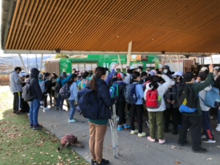 田園プラザに到着しました。みんなが頑張って歩いたので、予定より早めに着くことができました。プラザの中を回って、お店の場所などを確認しました。