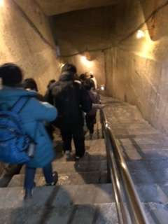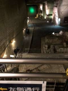 大谷資料館の館内に入り、順路に沿って進みます。下に降りる急な階段があります。