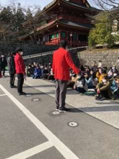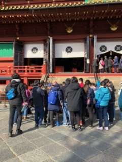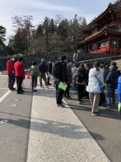 日光東照宮に到着しました。赤いジャケットの専門のガイドの方に案内をしていただきます。
