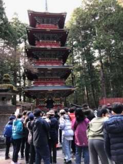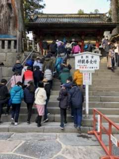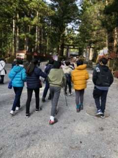 参道で集合写真をクラスごとに撮りました。事前に考えたシャッターの時の合言葉に、みんな「うふふふ。」と笑顔になりました。