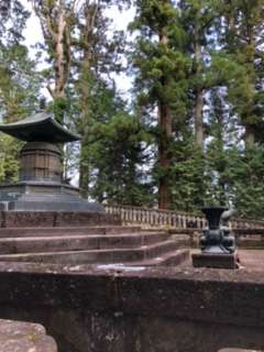 石段を上り、家康公の立派な墓所を見ました。8角5段の石の基盤の上の3段は青銅で造られていて、その上の唐銅製の宝塔も重厚感があります。