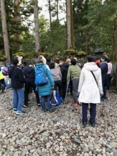 拝殿でお参りをした後は、鳴龍を聞きに本地堂に行きました。16メートルある龍の顔の真下で拍子木を鳴らすと、龍の鳴き声が聞こえました。鳴き声を聞いた人は運気が上がるそうで、子どもたちは「あ、聞こえた。」と嬉しそうでした。