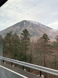 宿舎に向かうバスの車窓から男体山の頂上が見えました。くっきりときれいに見えることはあまりないそうで、よかったです。