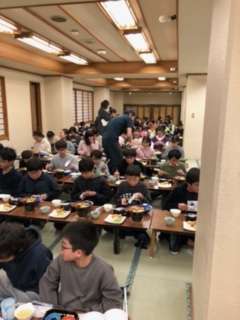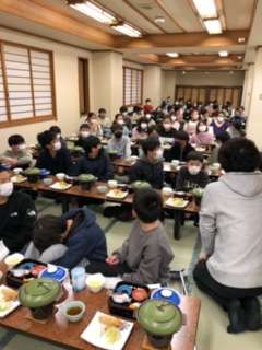 おいしくて温かい夕食をいただきました。ご飯とお茶のおかわりをたくさんしています。たくさん活動してお腹が空いていたんですね。