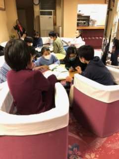 宿舎に戻ってから行動班で振り返りをしました。しおりを読み、時間を有効に使って行動できるようになってきています。良い兆しです。