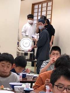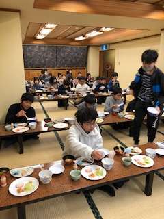 朝食が始まると…みんな食欲旺盛でした。次々お代わりに並んで食べています。