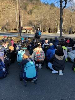 出発予定時刻より2分早く全員が集まりました。「時間を意識して行動できるようになってきましたね。」と先生に褒められました。