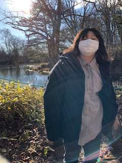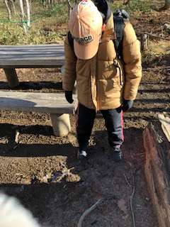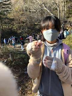 泉門池に到着しました。大きな霜柱を見つけて足でザクザク踏んでみたり、手に持ってみたりしていました。「春雨みたい。」と長さ5センチほどある霜柱を、触っている子もいました。