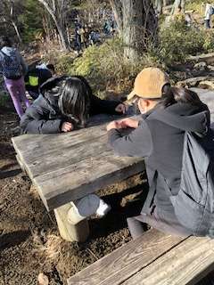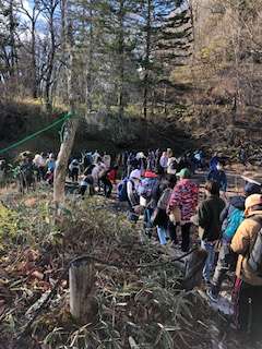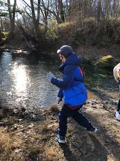 泉門池のほとりまで近づいて、水に手を浸して冷たさを感じたり、霜柱を観察したり、思い思いに自然を感じていました。