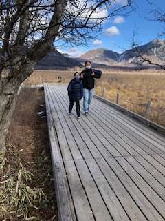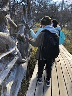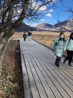 かなり前の倒木の根っこが木道から触ることができました。みんなが触るので、つるつるになっていました。