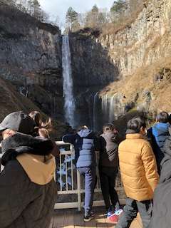 みんなずーっと滝を見ていました。滝の始まりのところは水しぶきがレースのようにふんわり落ちているように見えます。