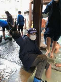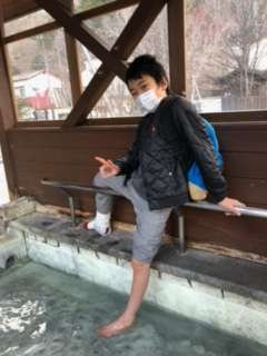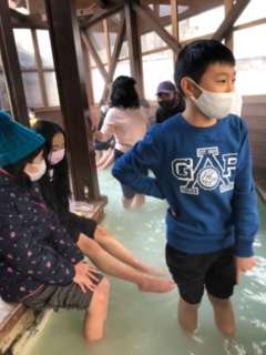 足湯の温度は3段階ありました。一番熱いお湯の場所にずっとつかっていた子の足はすっかり赤くなっていました。でも気持ちよかったようです。
