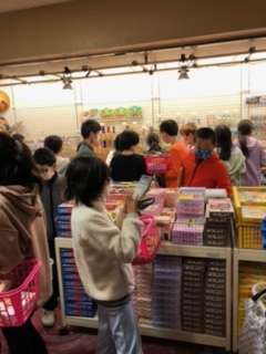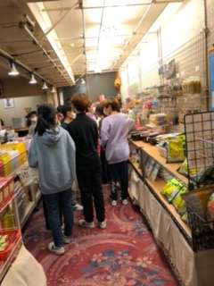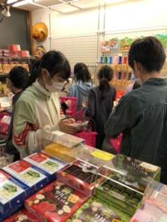 入浴と買い物の時間になりました。担任の先生からお小遣いを受け取って買い物をします。計算機を片手に何を買おうかと考えています。