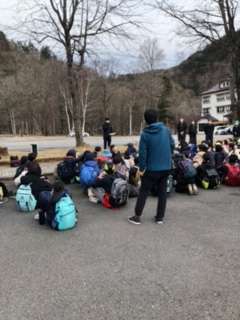 集合場所に時間通りに集まれた班が少なく、全部の班がそろったときは、予定より15分遅くなっていました。先生からしっかりと考えて行動するようにとの注意がありました。