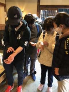 途中で一緒になった班の子どもたちと体験のお店に入りました。紅庵では何を体験したのでしょうか。
