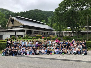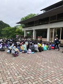 ほぼ予定通りにふじやまビレジに到着しました。学年全体での集合写真とクラス写真を撮りました。