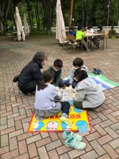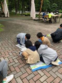 そろそろコースター作りも終わりです。仕上げのやすりがけをしています。