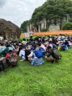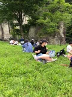 大谷資料館から外に出ると、また暑さを感じました。お弁当を食べる公園に到着し、いただきますのあいさつをしました。草がふかふかで、虫も飛んでいて、自然を感じながらのおいしいお昼ご飯になりました。