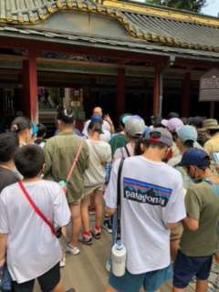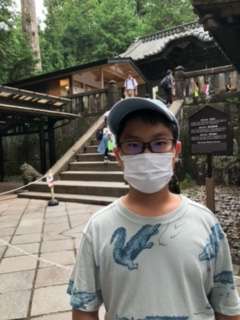 これから家康の墓所がある奥社への参道入り口である東回廊潜門を通ります。門の上には「眠り猫」の彫刻があるので、またぎながら見上げました。